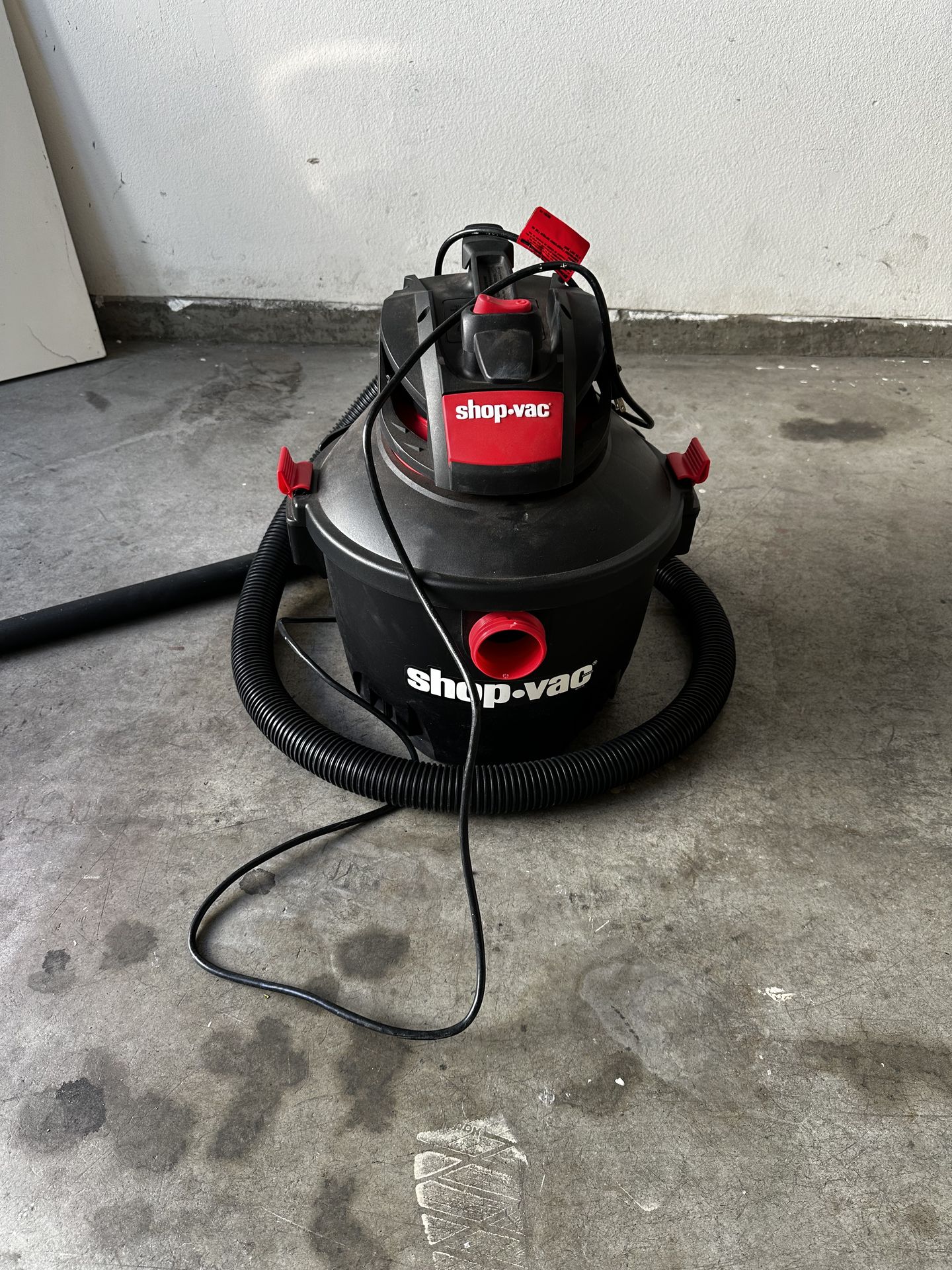 Shop-Vac wet/dry vacuum with hose and attachments. Works perfectly. Great for garage, shop, or home cleanup.