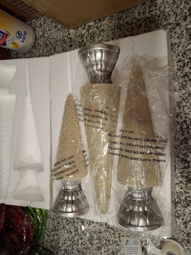 Literally just open them for pictures. Each one has beautiful details. Top is made of wax that won't melt when lit. Each one uses C size batteries. ( not included) and can be left on or on a 5 hour timer. you can also find more information online HOME BY VALERIE