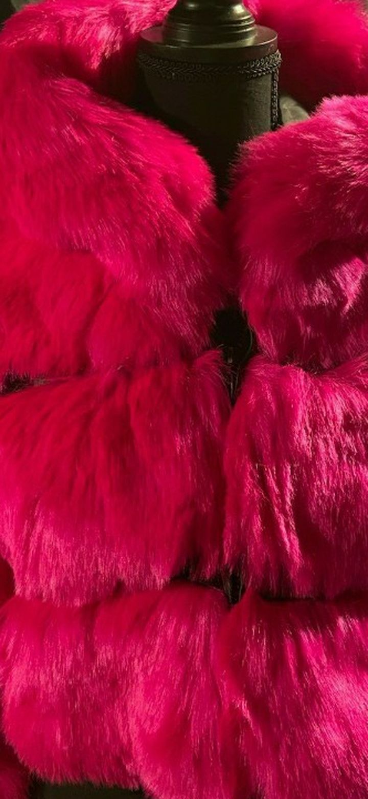 Small faux fur pink jacket ( new never worn) Great for a valentine's gift