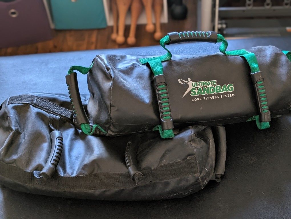 Two sandbags with filler bags (about 80lbs total). Perfect for weight training in limited space. Versatile, excellent for compound movement training.
