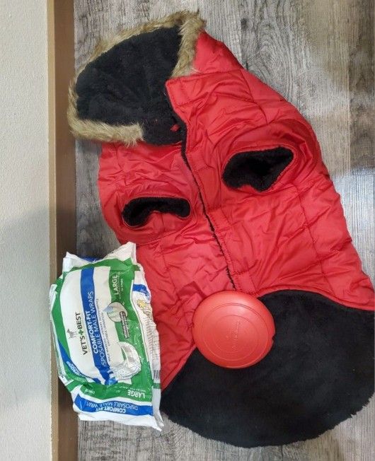 Top Paw Outdoor Jacket For Dogs With Toy And 4 Dog Diposable Male Wraps Size XL Color Red.