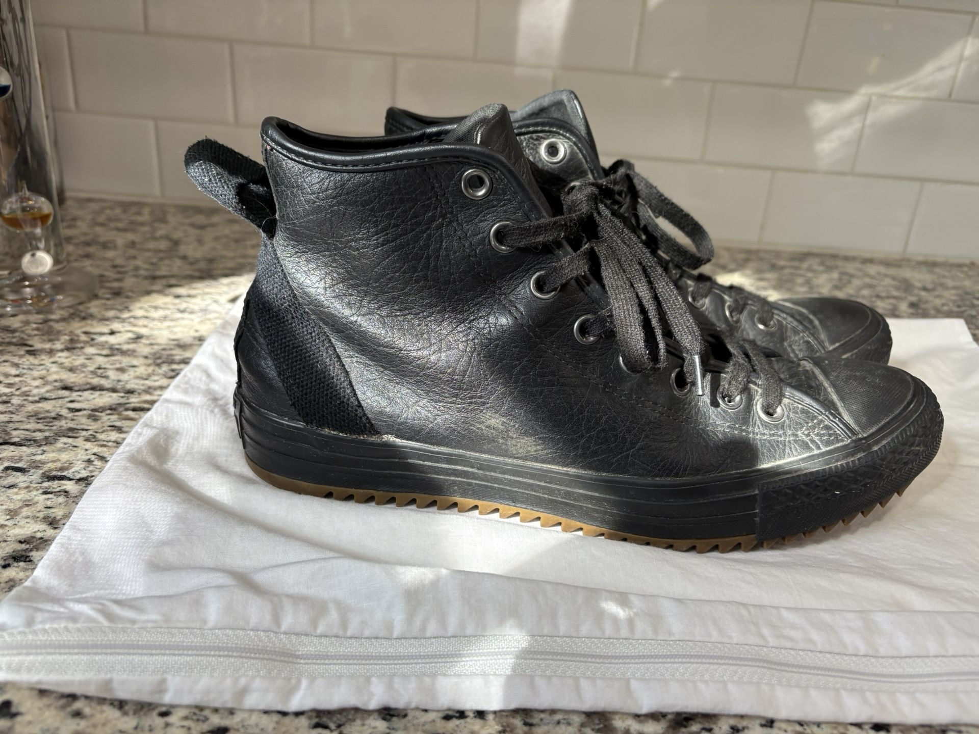 Converse All leather hitops gum Rubber Sole