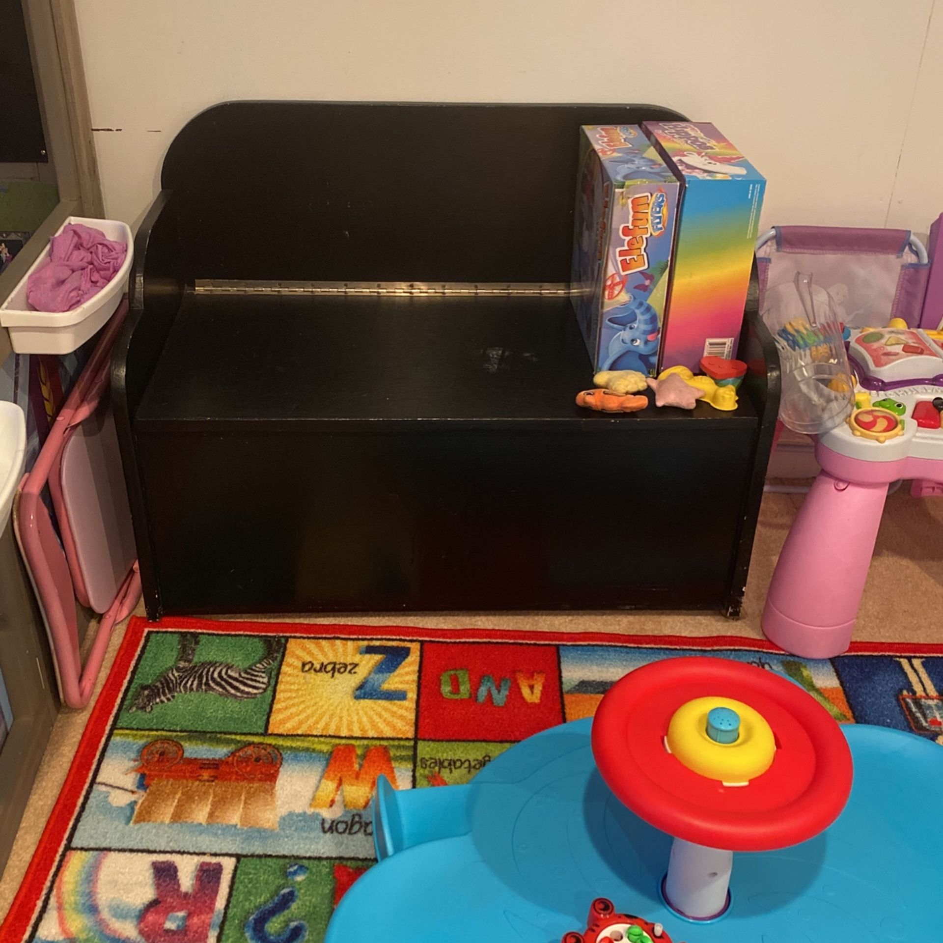 Toy Box Storage Bench And Alphabet Rug