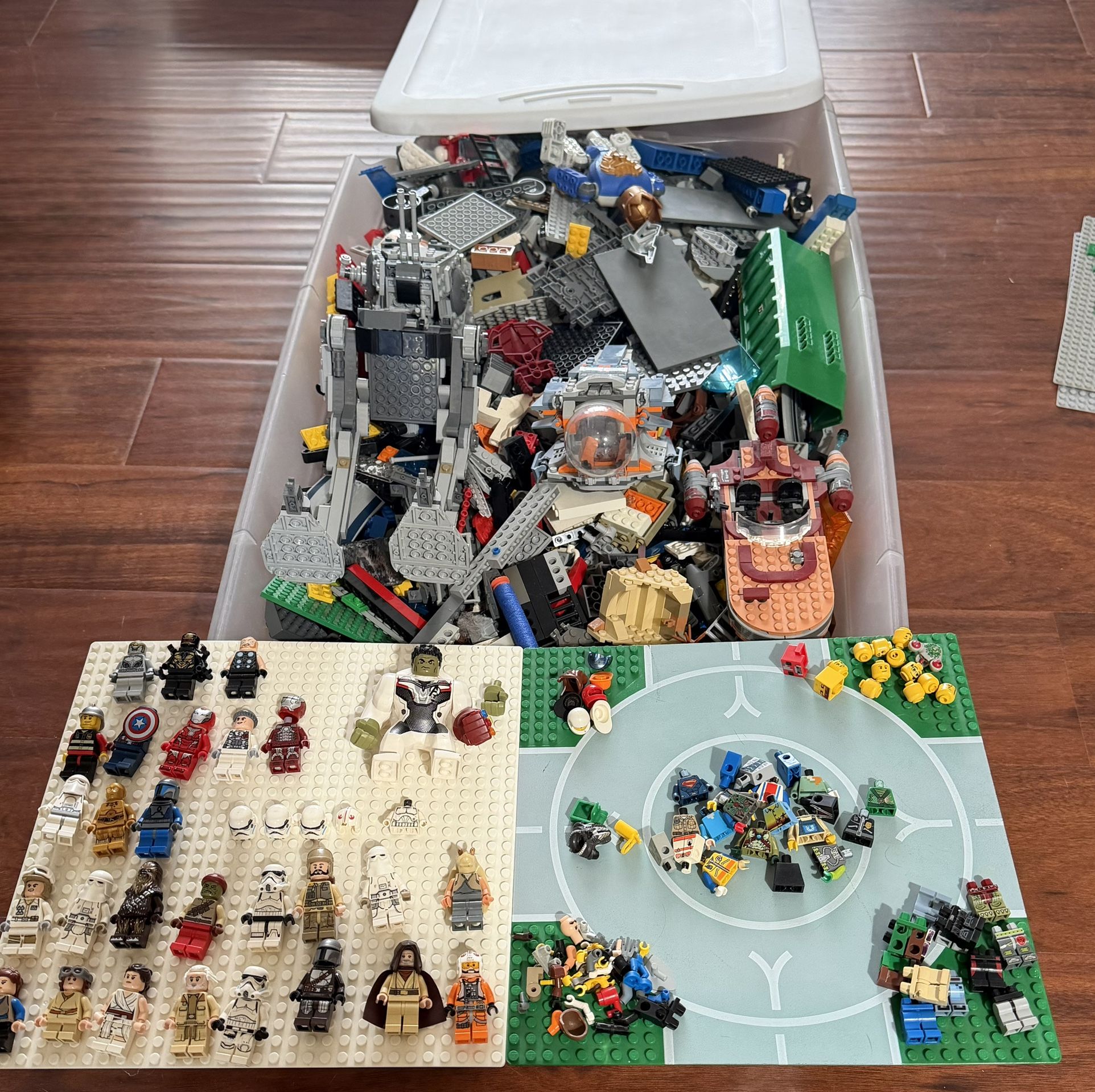 Lots of Star Wars LEGO MINIFIGS and Marvel. LEGO 21 pounds of bulk also. LEGO sets too. Includes parts and pieces.
