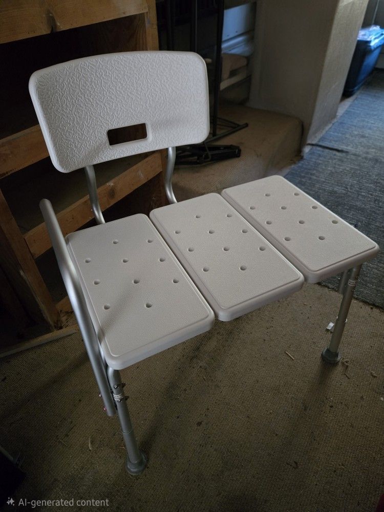 Item New- Never Used. Product Dimensions16"D x 29"W x 25"H Maximum Weight Recommendation 250 Pounds Minimum Height 16.5 Inches 24" X 15" SEAT OFFERS EASY TRANSFER FROM WHEELCHAIR TO BATH SEAT. 5 LEVELS OF SEAT HEIGHT ADJUSTMENT, EACH INCREMENT IS 1". HIGHLY FLEXIBLE, SEAT HEIGHT ADJUSTS FROM 16 1/2" TO 20 1/2". SEAT BACK CAN BE ASSEMBLED FOR LEFT OR RIGHT HAND APPLICATIONS. INSTALLATION OF BACKREST IS OPTIONAL. SURE-GRIP LEGS PROVIDE ADDED SAFETY AND STABILITY. THE OVERALL DIMENSION IS APPROXIMATELY 29”(L) X 16”(D) X 25”(H, WITHOUT BACKREST).