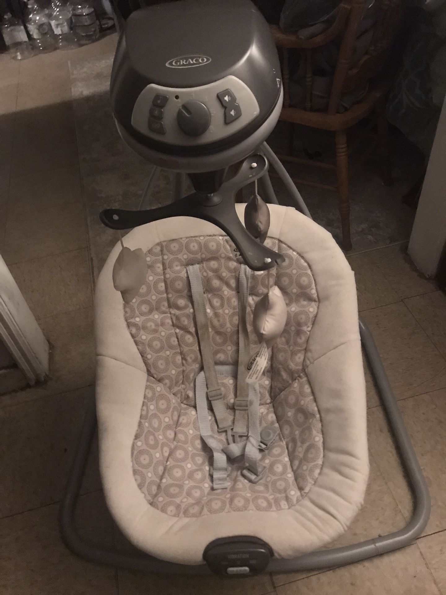 This swing is battery operated as well as plug in, does not come with the cord. I can easily be taken apart for tranport.