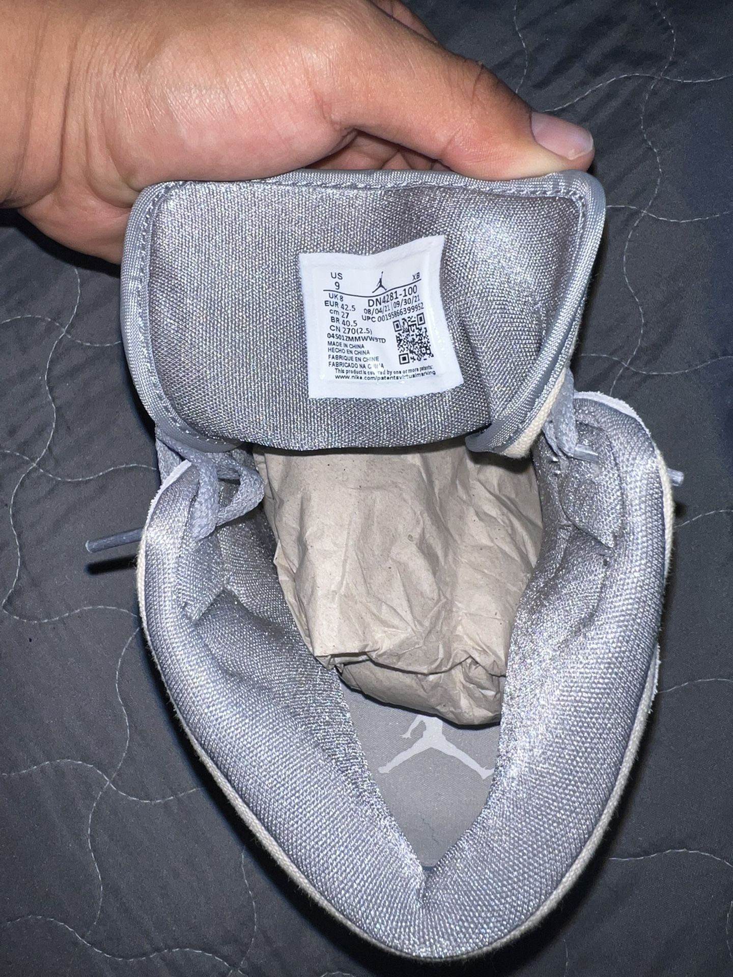 Mens size 9 Jordan 1 mids coconut milk particle greys Worn once inside looks new only bottom seals shows wear but easily wipeable
