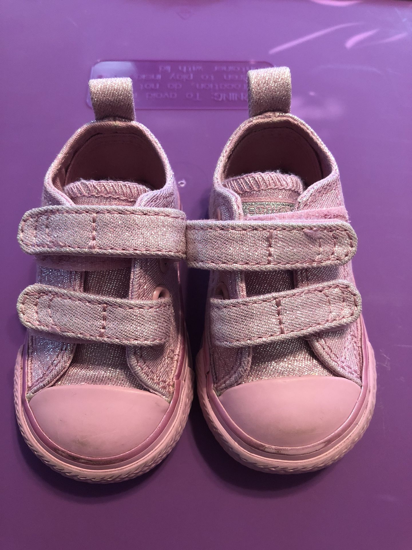 Size 2 pink glittery converse. Still in good condition, worn only a few times.