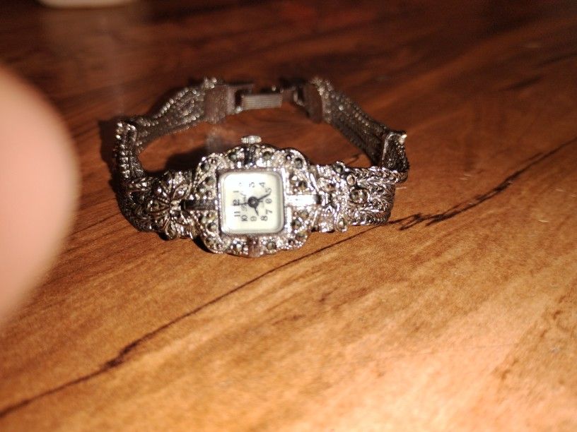 Mayfair Marcasite Quartz Watch: Stainless Steel Band, 7.25"