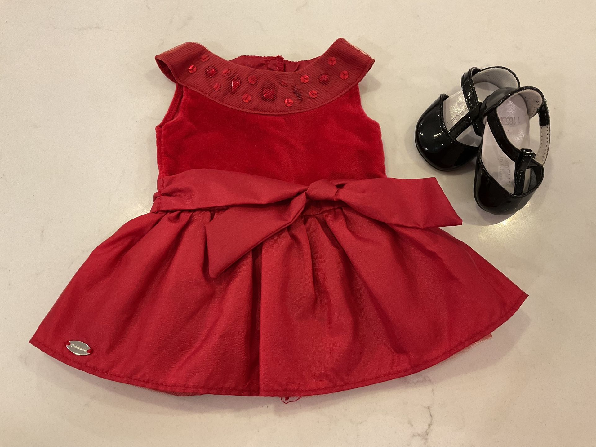 Dress comes with black patten leather shoes. In excellent condition.