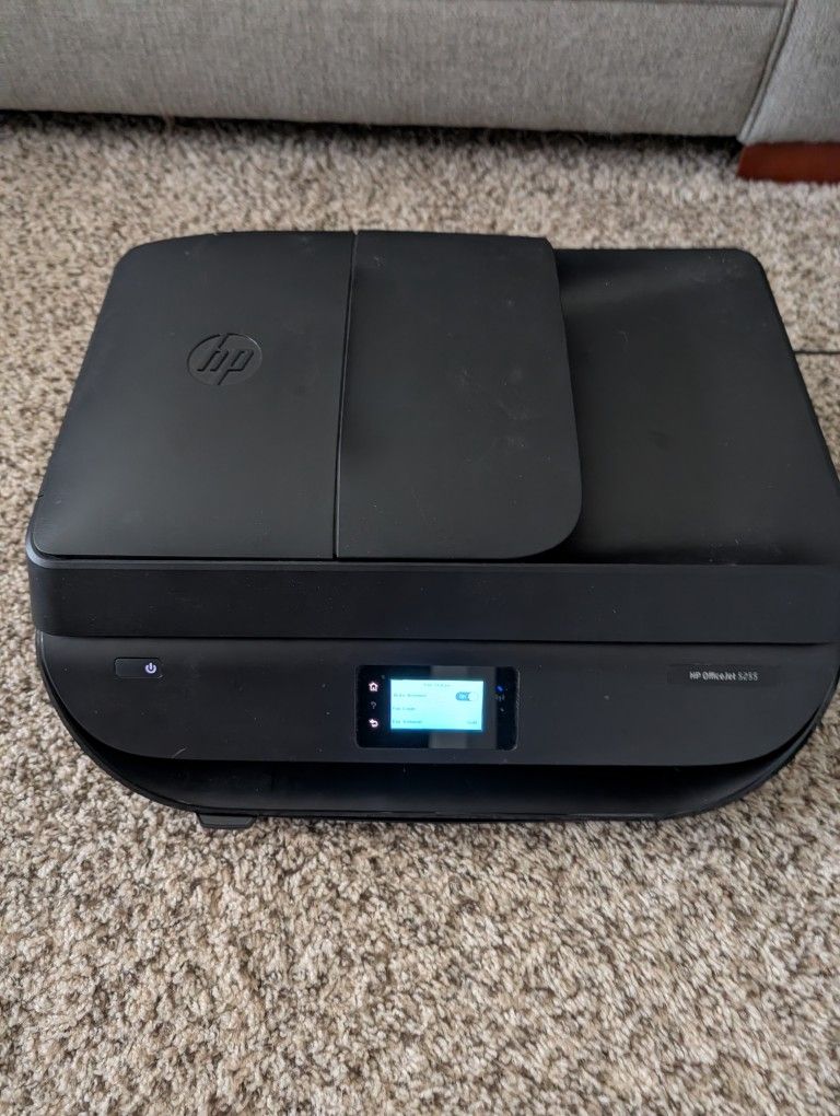 Selling an HP OfficeJet 5255 All-in-One Printer. It powers on and works mechanically, but it currently does not have ink cartridges. You will need to buy HP 63 ink to use it. Key Features for the 5255: 4-in-1: Print, Copy, Scan, and Fax. Wireless: Dual-band Wi-Fi for stable connections + Bluetooth Smart. Efficiency: Automatic two-sided printing (duplex) and a 35-page Auto Document Feeder (great for scanning stacks of paper). Touchscreen: 2.2" Mono Touchscreen for easy control. Connectivity: Works with the HP Smart app for printing directly from your phone. What’s Included: The Printer (HP OfficeJet 5255) Power Cord