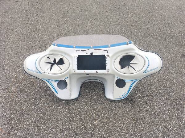Harley batwing front fairing cowl road king electra softail shovelhead dyna tour street road glide classic custom bat wing windshield nice solid fiberglass fairing not the cheap chinese plastic ones. $195 obo cash or trade bring your parts for trade in discount call text 386x402x2182 located in edgewater fl 32132 Harley custom plastic fiberglass radio speakers cowel windsheild wind shield sheild cowl fairing club style shovel head flh flt flht flhr fltr
