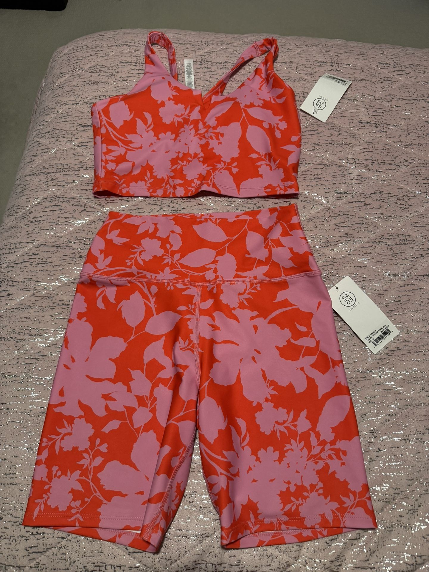 Nwt Womens Medium Sage Collective Hothouse Floral Lava Workout Set Bra And Shorts