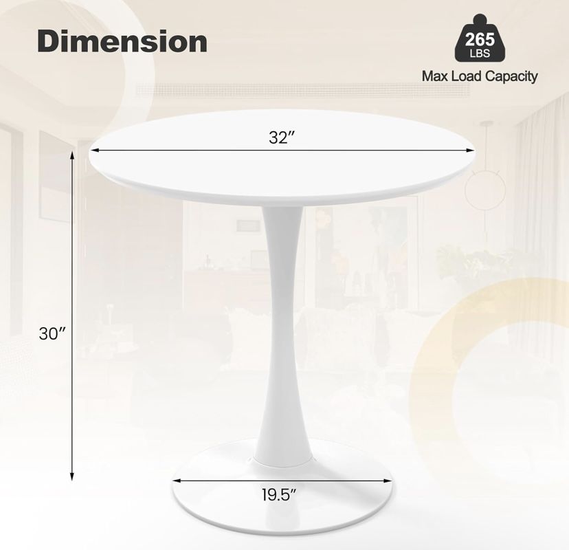 Giantex White Round Dining Table, 32-inches Modern Tulip Kitchen Table with 0.9" Thickened Tabletop & Sturdy Metal Pedestal, Mid-Century Leisure Table for Small Places, Dining Room, Living Room, Cafe. NEW still in box