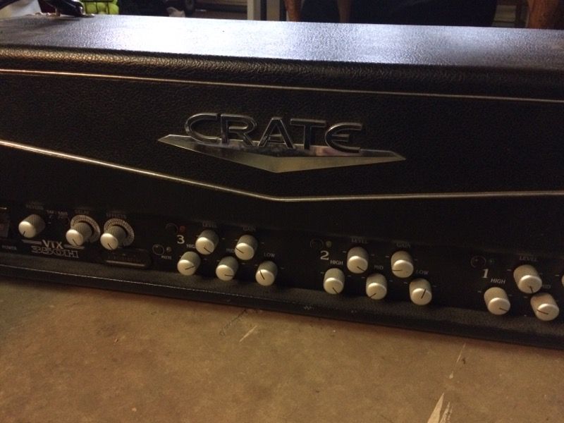 Crate VTX350H amp head, sounds great, works great. Been sitting in my garage collecting dust for the last two years. I don't have the foot switch or speaker cab, they were stolen a while back. Which is why my asking price is already so low.