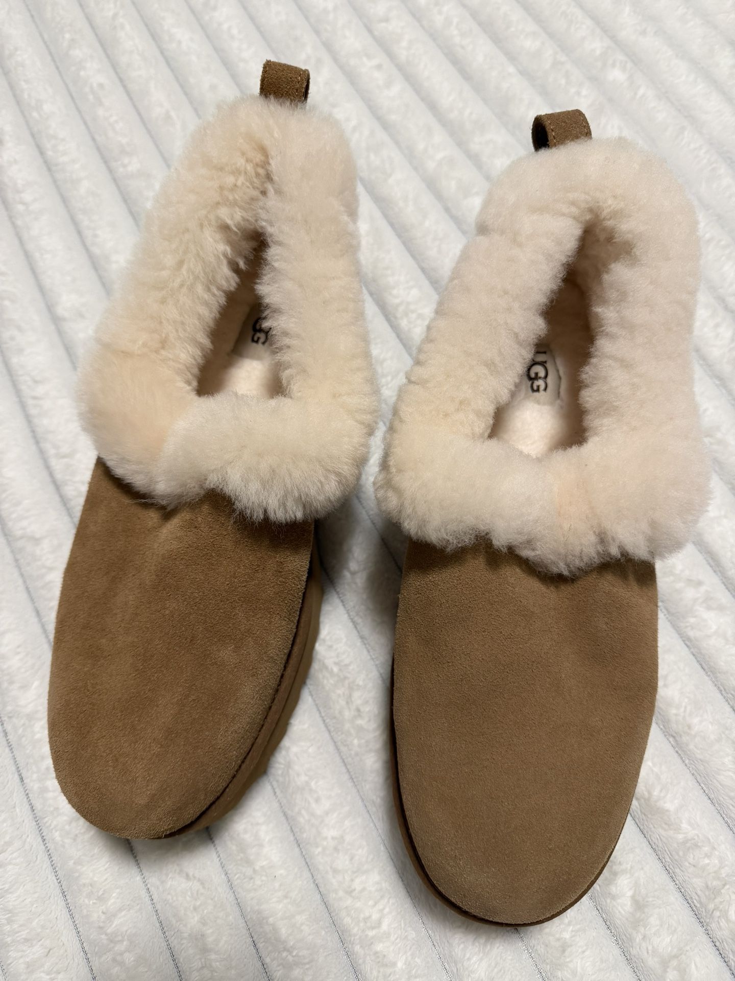 Slip into luxurious comfort with UGG's sheepskin slippers. Ideal for relaxing indoors. Ugg is in Great condition. Size 11