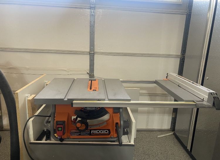 Ridgid Table Saw R4514. Upgraded fence back piece (price of back piece alone is $50 online).