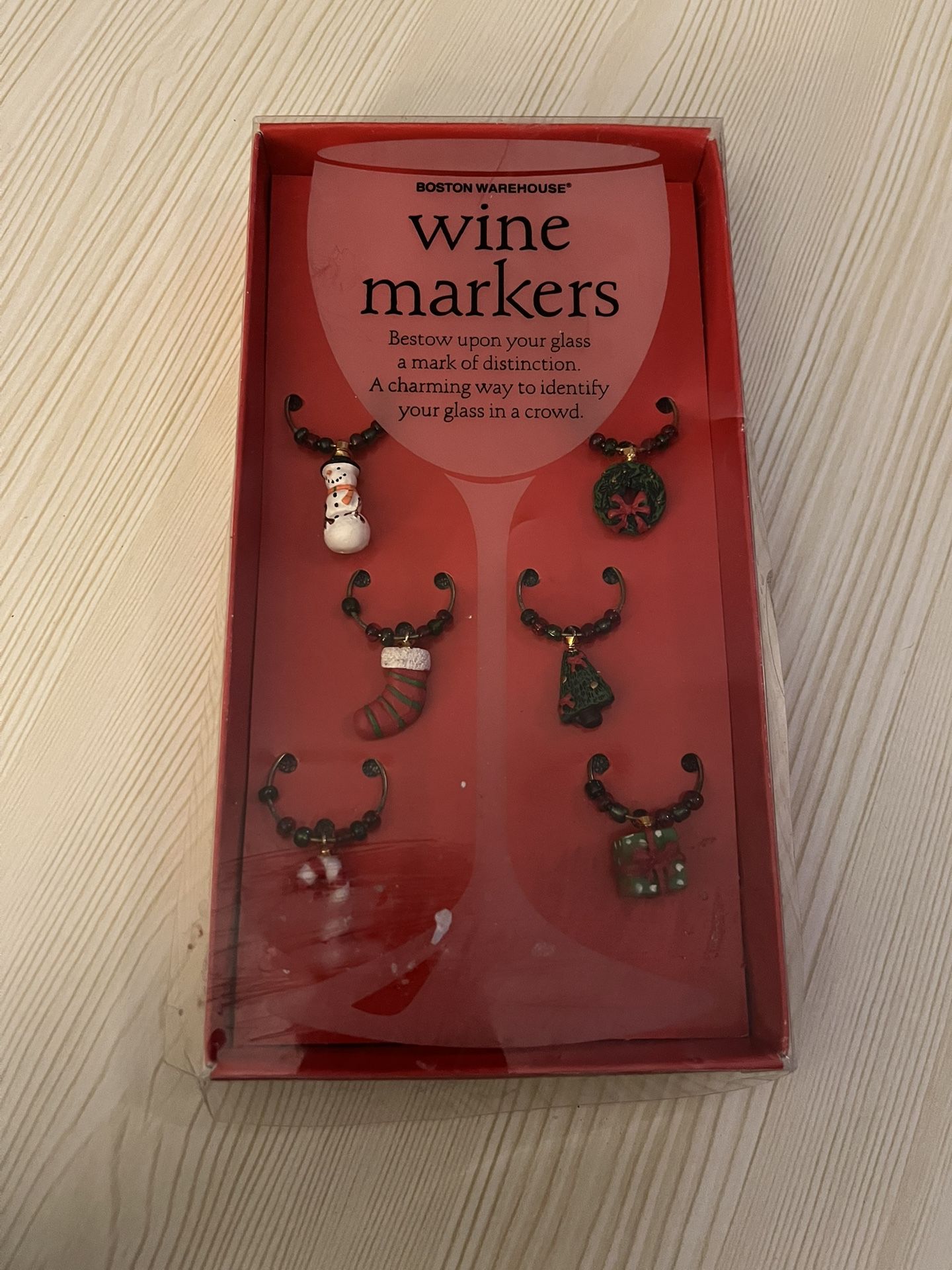 Set of Six Holiday Wine Glass Markers. Santa, Stocking, Candy Cane, Wreath, Christmas Tree and Present. Pick up in Mandarin area. (Please see my listings page for more items for sale.)