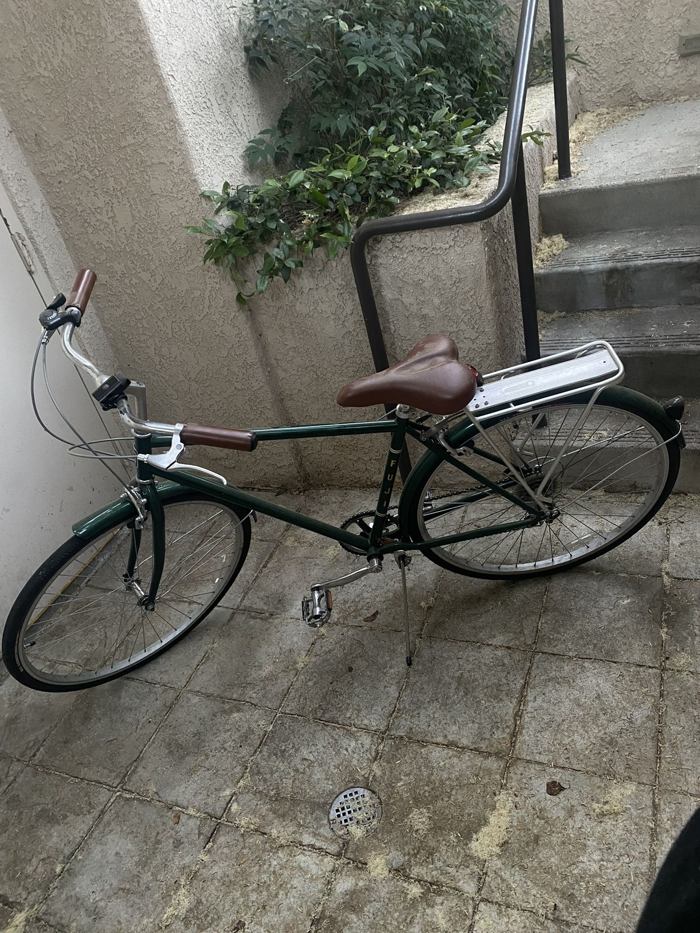Fuji Sagres Bike: Size:17" (43cm) Color(s): Forest green Frame: Hi-ten steel city Fork: Hi-ten steel Crankset: Single, 44T Pedals: