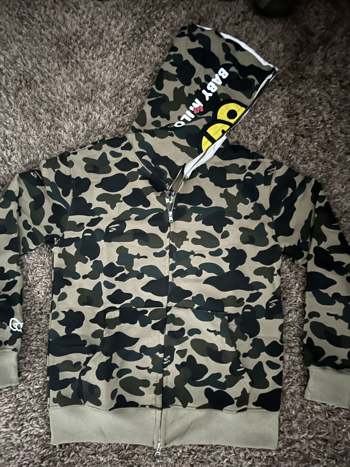 BAPE Sanrio Milo Hello Kitty Split Face 1st Camo Full Zip Hoodie Green
