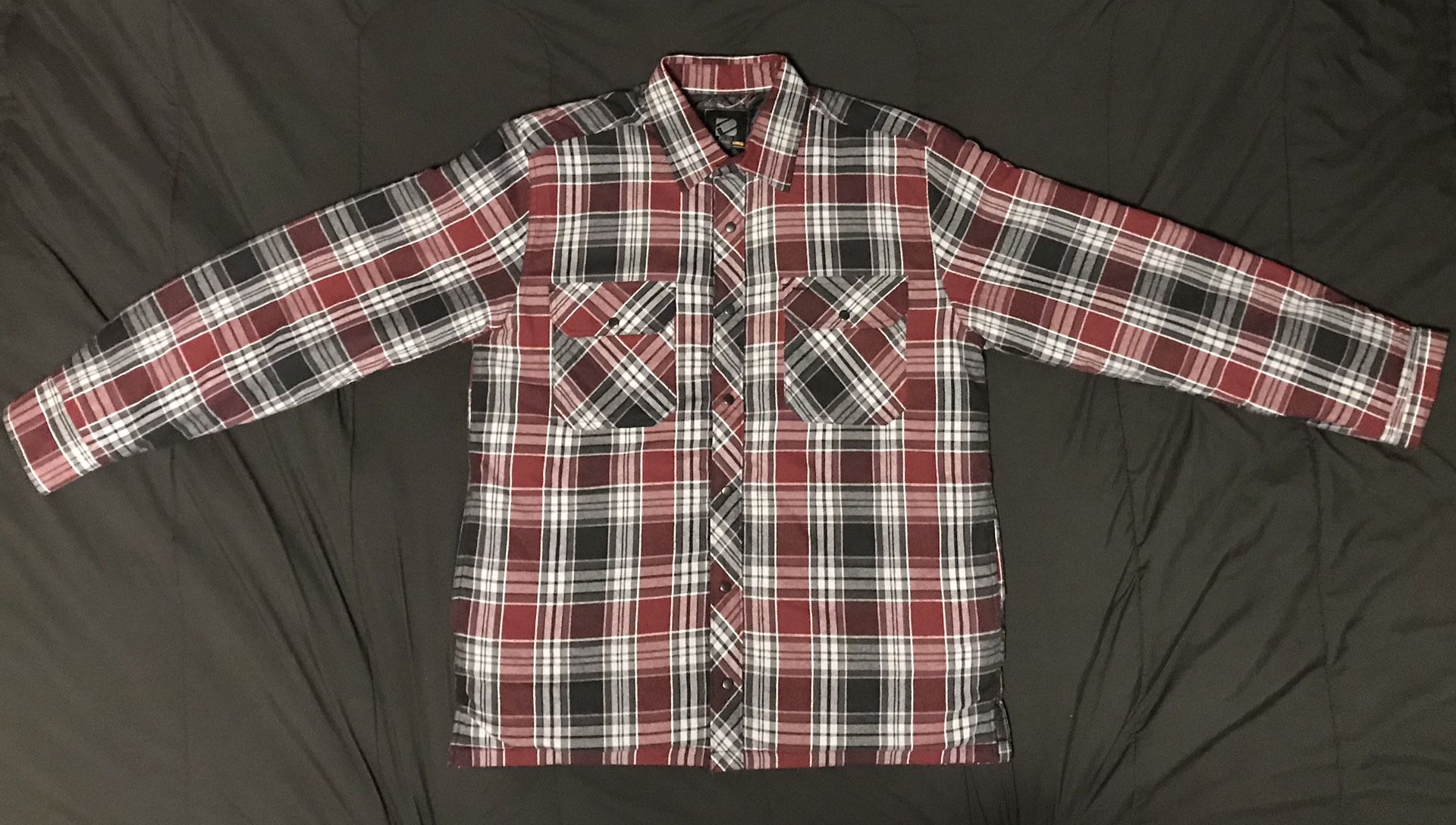 Size Large Color- Crimson / Charcoal / light Grey Very comfortable and warm. Good quality. 4 pockets on the outside 2 inside pockets Brand new. No tags. Never worn and never washed.