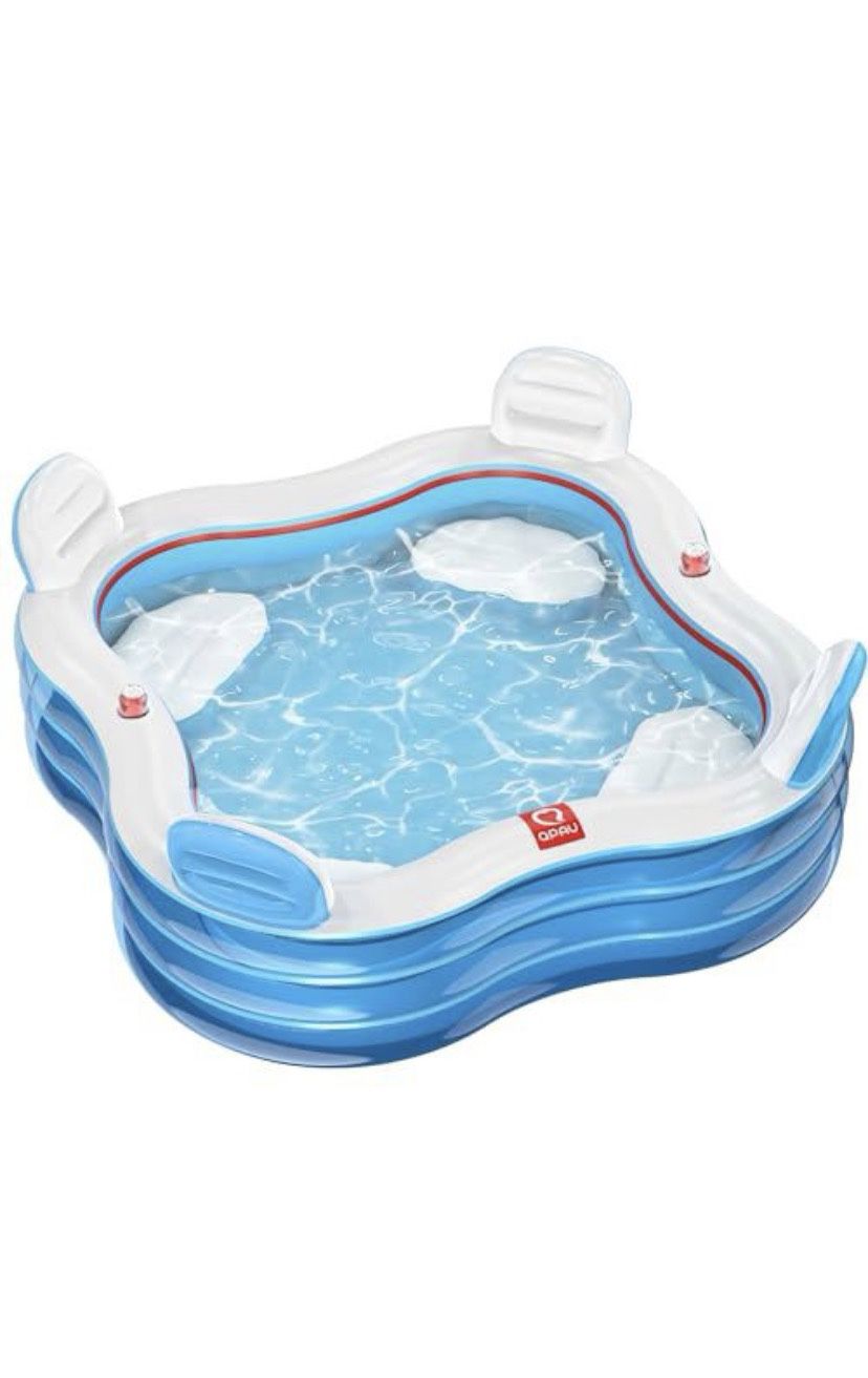 Open box QPAU Inflatable Swimming Pool, Full-Sized Blow Up Pools with Seats and Backrests, Kiddie Pool for Outdoor & Backyard, for Family Summer Time Fun, Jelly Blue
