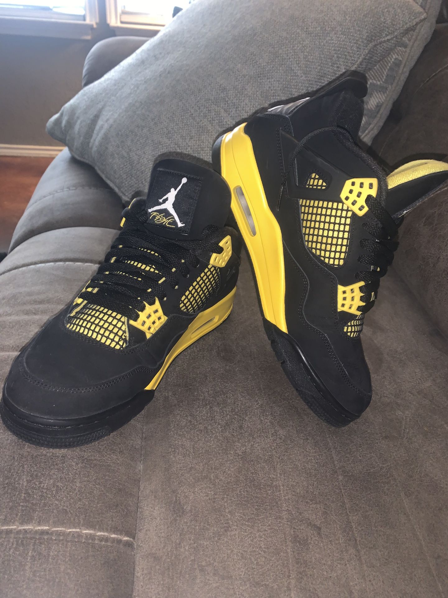 Air Jordan 4 Yellow Thunder Men’s size 9 100% authentic Includes original box Gently worn, clean condition No rips or tears, stored properly and only a couple creases Serious buyers only. No trades. Pick up only.