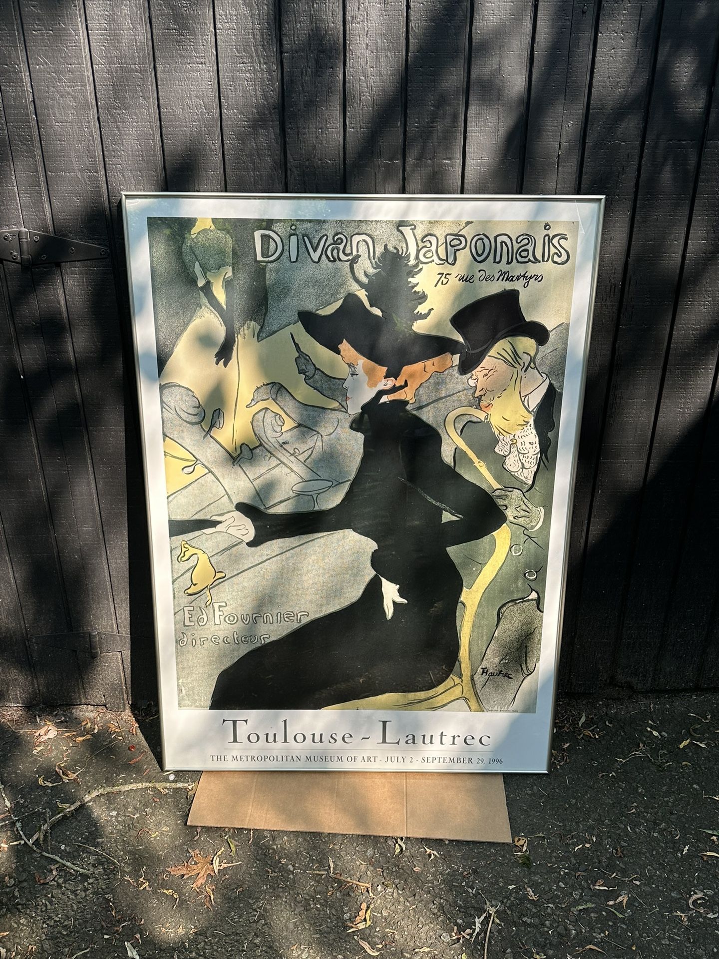 This is a large print titled Le Divan Japonais. 45 length x 32 width. The artwork is a thick hard cardboard material that is framed. Small defect upper left corner but not very noticeable (see third photo).