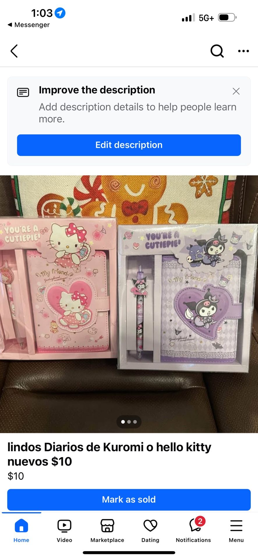 Hello Kitty And Kuromi Diario New $10 Each