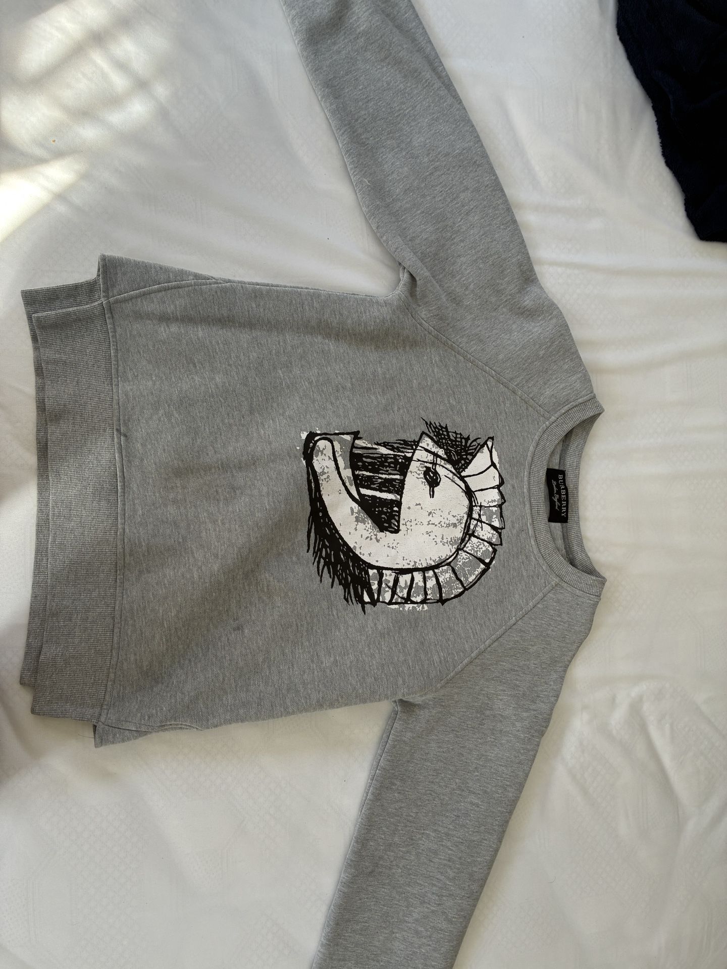 I didn't wear this sweater much, but I did wear it several times. It's a designer sweater from the Burberry brand. Someone gave it to me as a gift, but it doesn't fit me anymore; the size is too small. So I hope someone will take it; it's a nice accessory for outfits or other things.