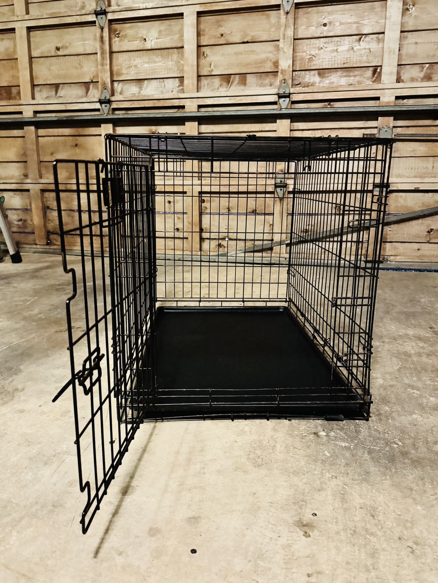 Large dog crate comes with black removable tray for comfort and easy cleaning. 36.5 L x 22.875 W x 24.625 inches