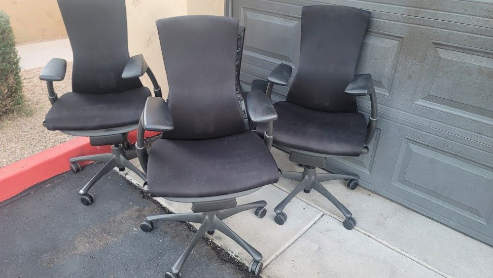 Herman Miller Embody Office Desk Chairs No issues and all mechanisms work perfectly Venmo, Zelle, Cash, CC, Cash app Free delivery within reason Black Free delivery within reason Fully loaded No issues All mechanisms work perfectly