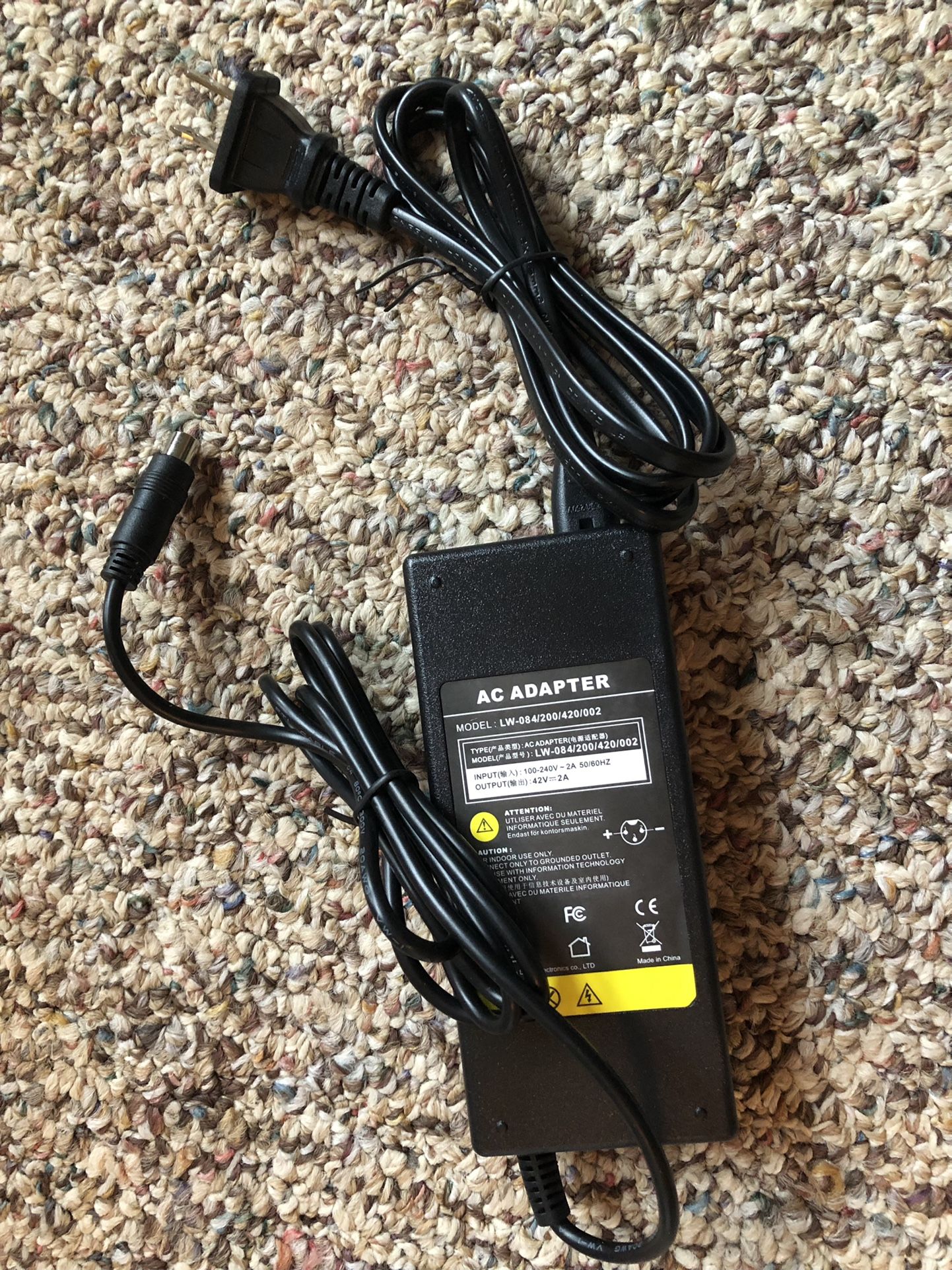 Adapter charger Model LW-084/200/420/002 Input 100-240V 50/60Hz 2A Output 42V 2A $13 OBO