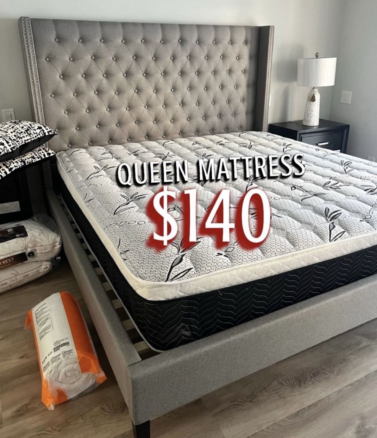 QUEEN MATTRESS ONLY $140 $200 WITH BOX SPRING $20 DELIVERY FEE