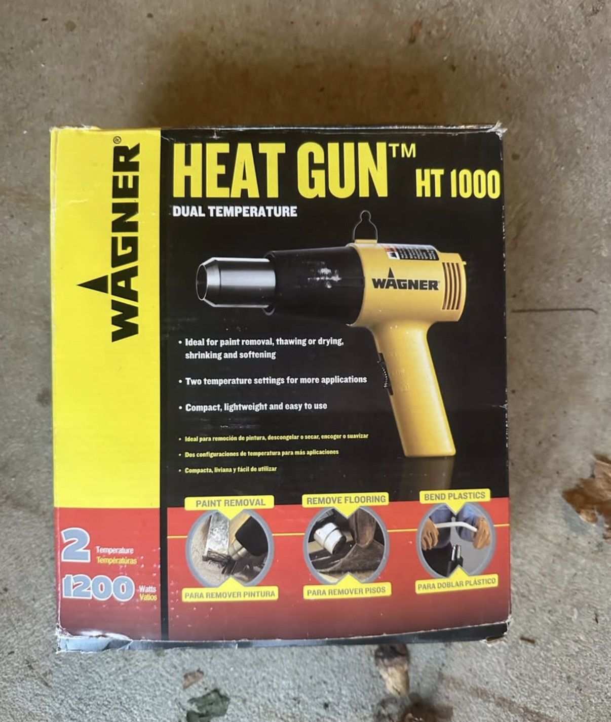 Reliable, easy-to-use heat gun perfect for home improvement, crafts, and shop projects. Comes in original box. 📌 Features: • 2 temperature settings for different applications • 1200 watts of power • Compact, lightweight design • Easy trigger-style operation 🛠 Great for: • Paint removal • Thawing pipes • Removing flooring or adhesive • Bending and shaping plastics • Shrink-wrap & craft use 📦 Condition: Used, box shows wear but tool looks solid Perfect for contractors, DIYers, furniture refinishers, and makers.
