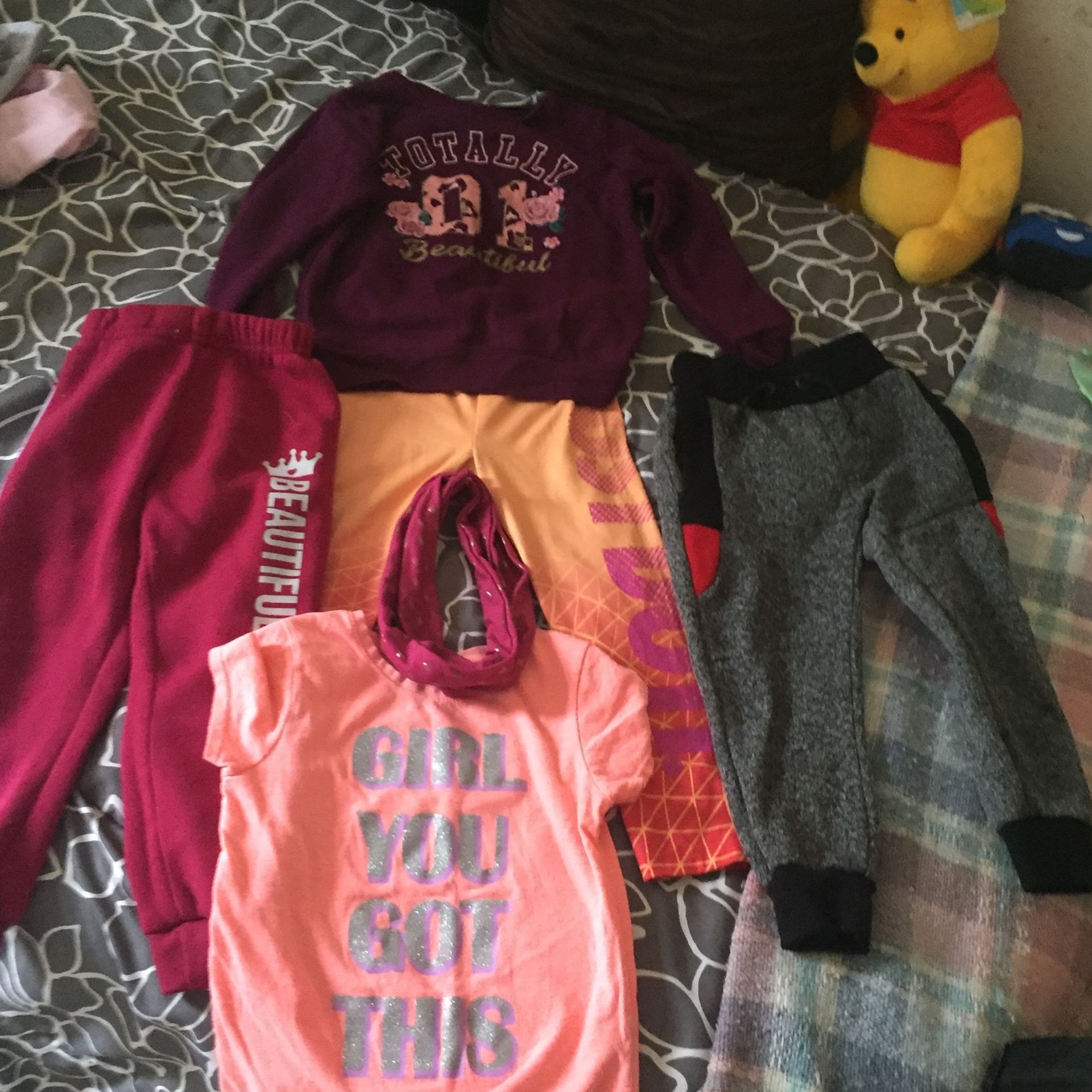 Multiple diff brands but at least three outfits an a mini scarf for the little one ! It’s all still in very good condition my daughter only wore them once she out grew everything fast!