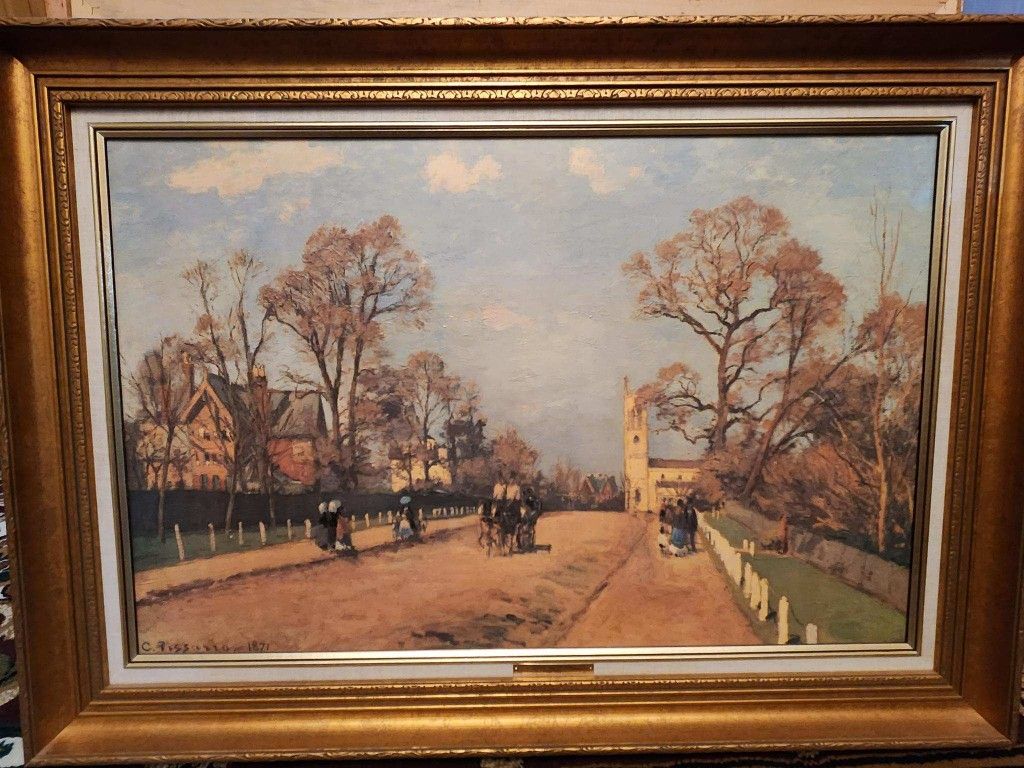 The Avenue Sydenham was originally painted in 1871 by Camille Pissarro. The canvas of this painting is 35 1/2”W x 25 1/2” T with a wood frame that is 2 1/2” thick. This is an Artagraph Edition