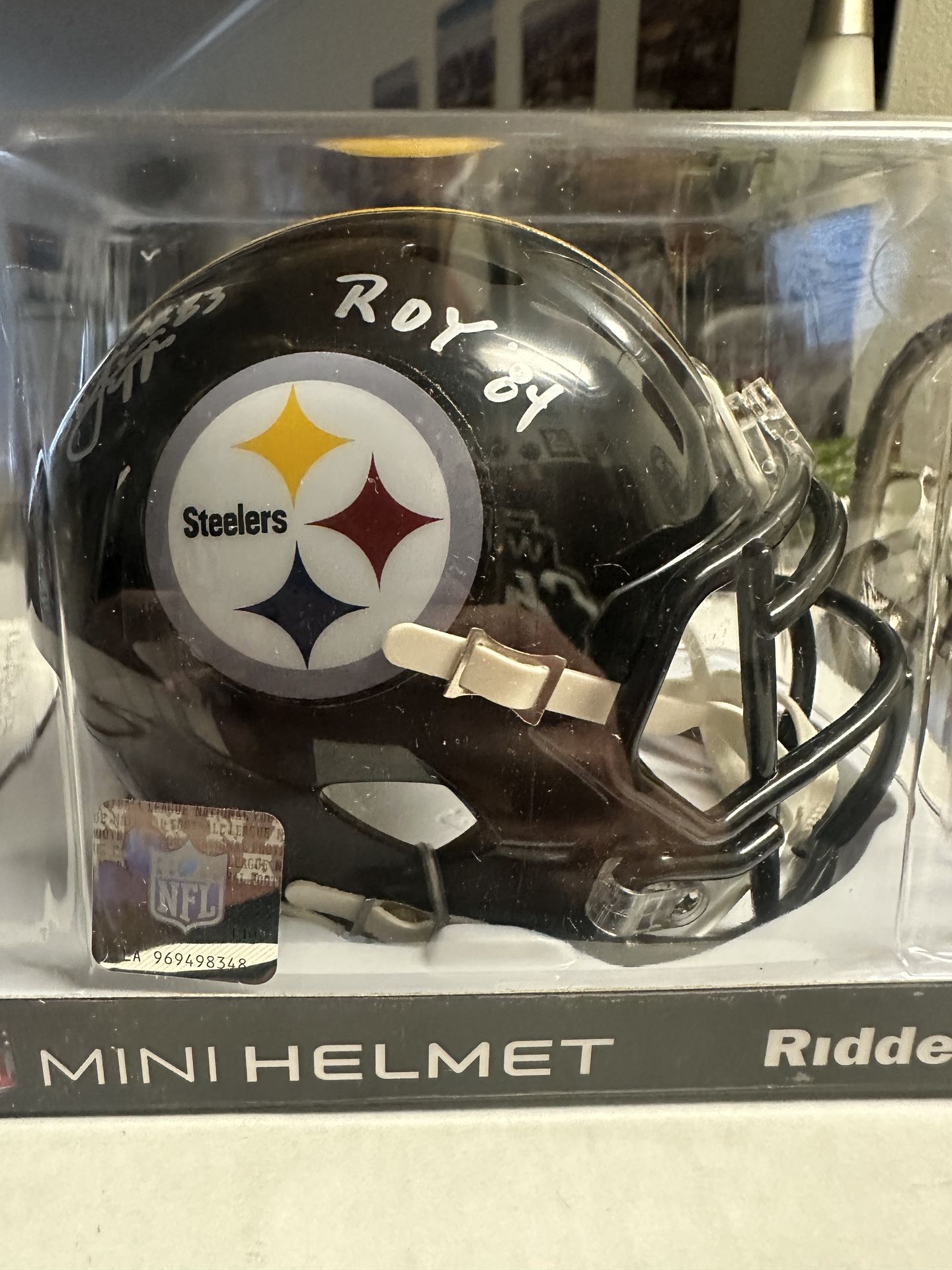The product is a Louis Lipps signed Pittsburgh Steelers Riddell Speed Mini Helmet with Beckett Authentication Services (BAS). As an original autograph, this helmet holds value for collectors and fans of football, specifically the Pittsburgh Steelers team. The autograph from the player adds a special touch to this unique item, making it a sought-after piece for sports memorabilia enthusiasts.
