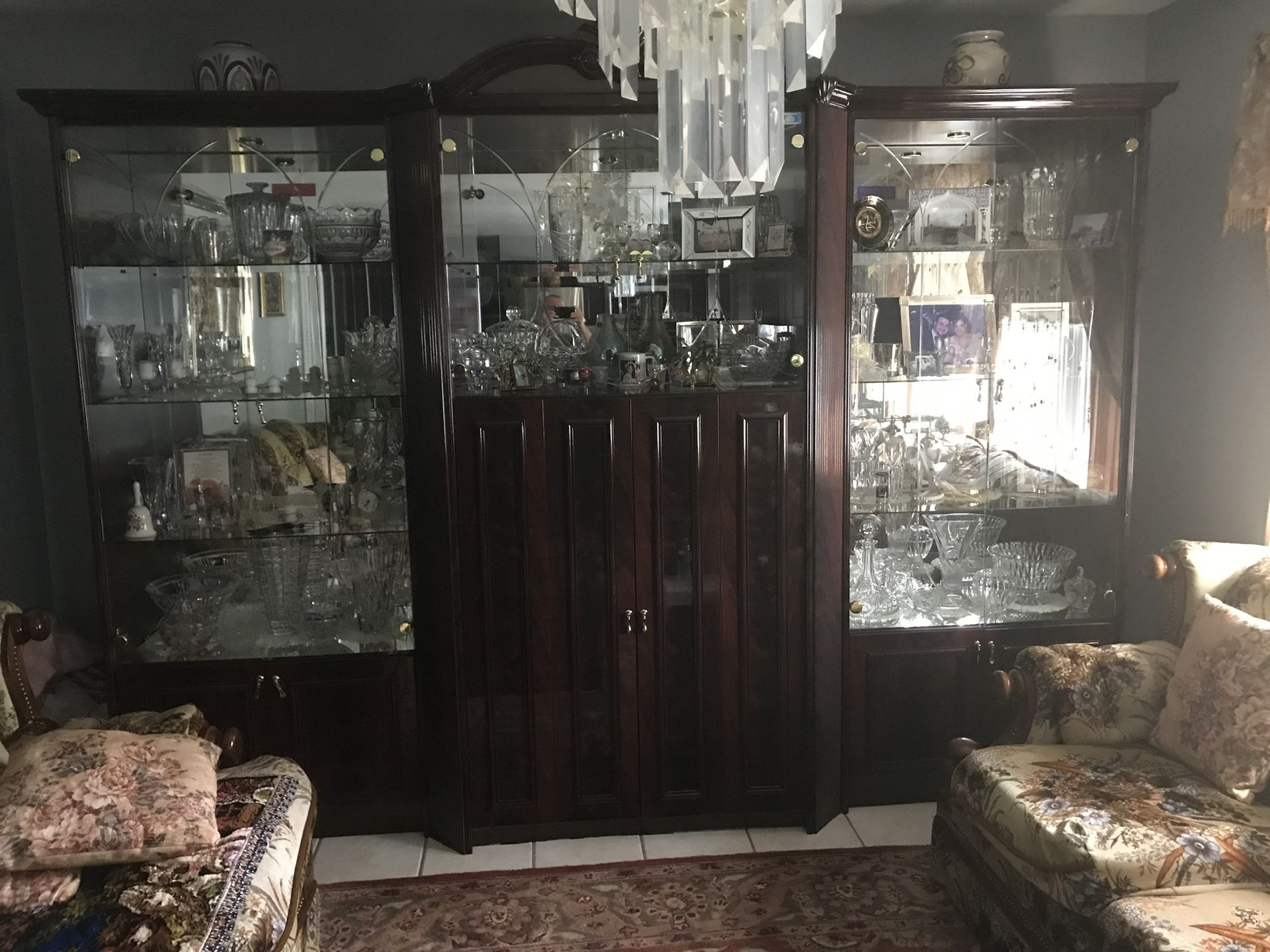 3 pieces china Excellent excellent condition no scratches at all it has glass shelves,storage and space for tv or storage no pets