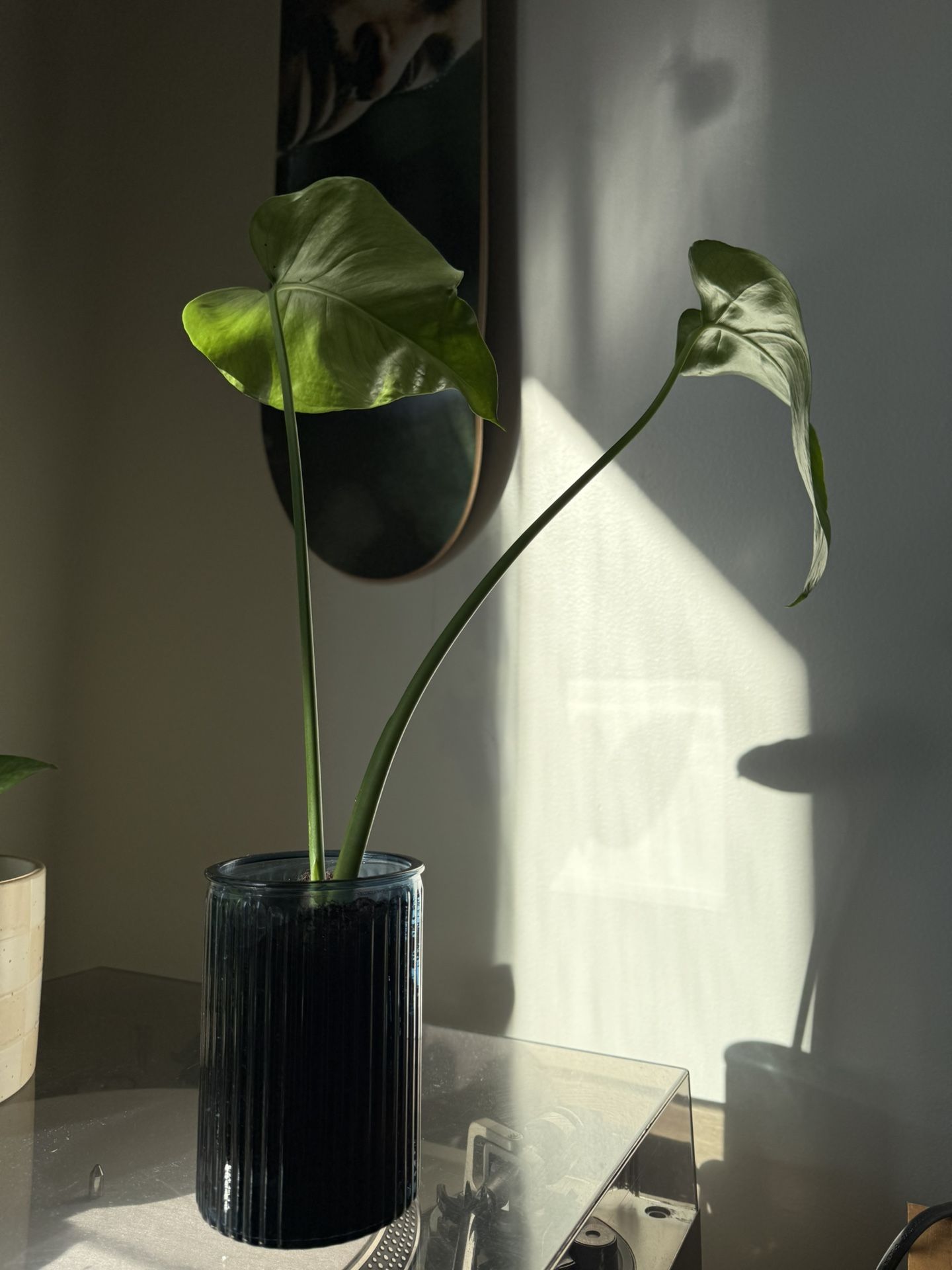 Beautiful Monstera plant with strong roots. Recently repotted and looking for a new home. This plant is very easy to take care of and grows quickly. Also great if you want to get into propagation.
