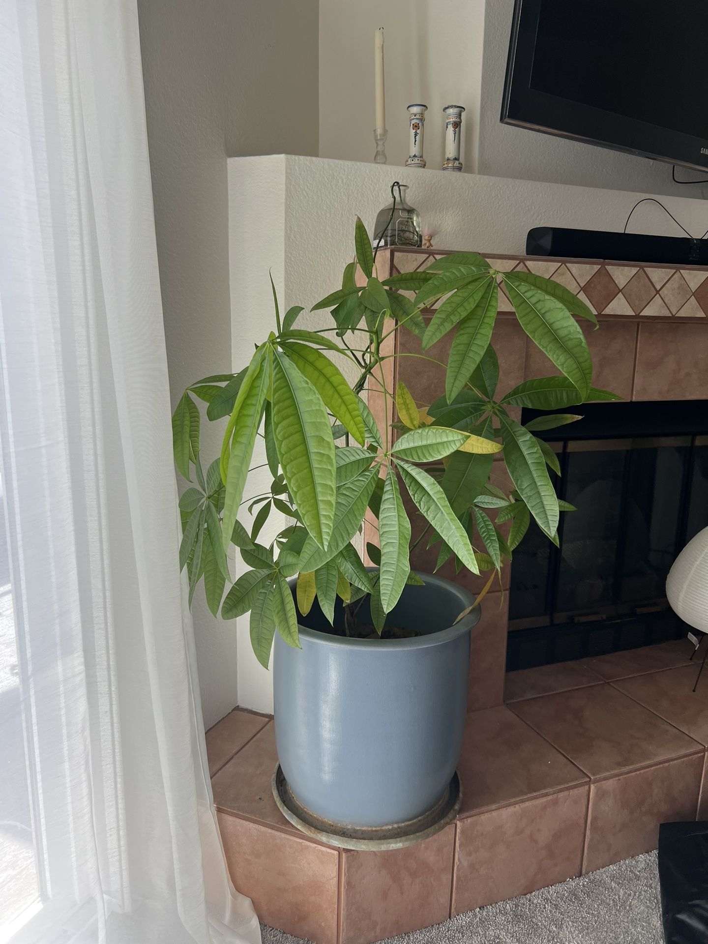 4 year old money tree in large pot. recently repotted