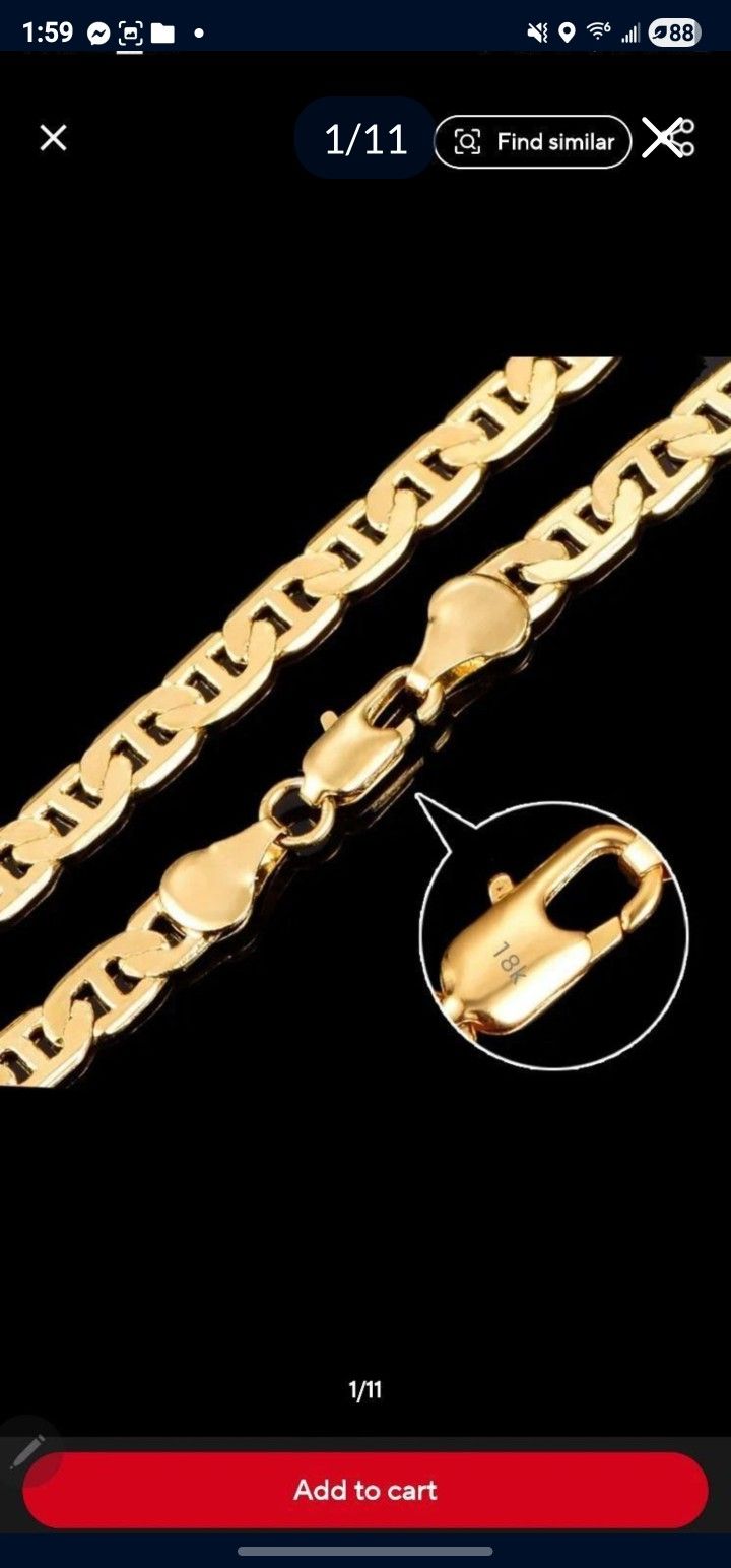 This is a 18K gold snake link Cuban chain it's used like new it was bought and Worn for a few hours on about four different occasions and other than that it has sat in a jewelry box so that is why the price is as low as it is so please no lowballing thank you the price is well beyond Fair. SERIOUS INQUIRIES ONLY. THANK YOU.