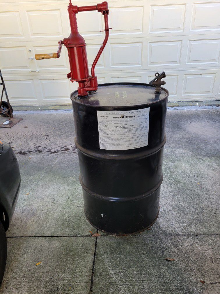 Made in USA by Tutthill Corp. Hand crank / with 55 gal. Drum EMTY made by Orlando drum company 20 yes old..always garage kept