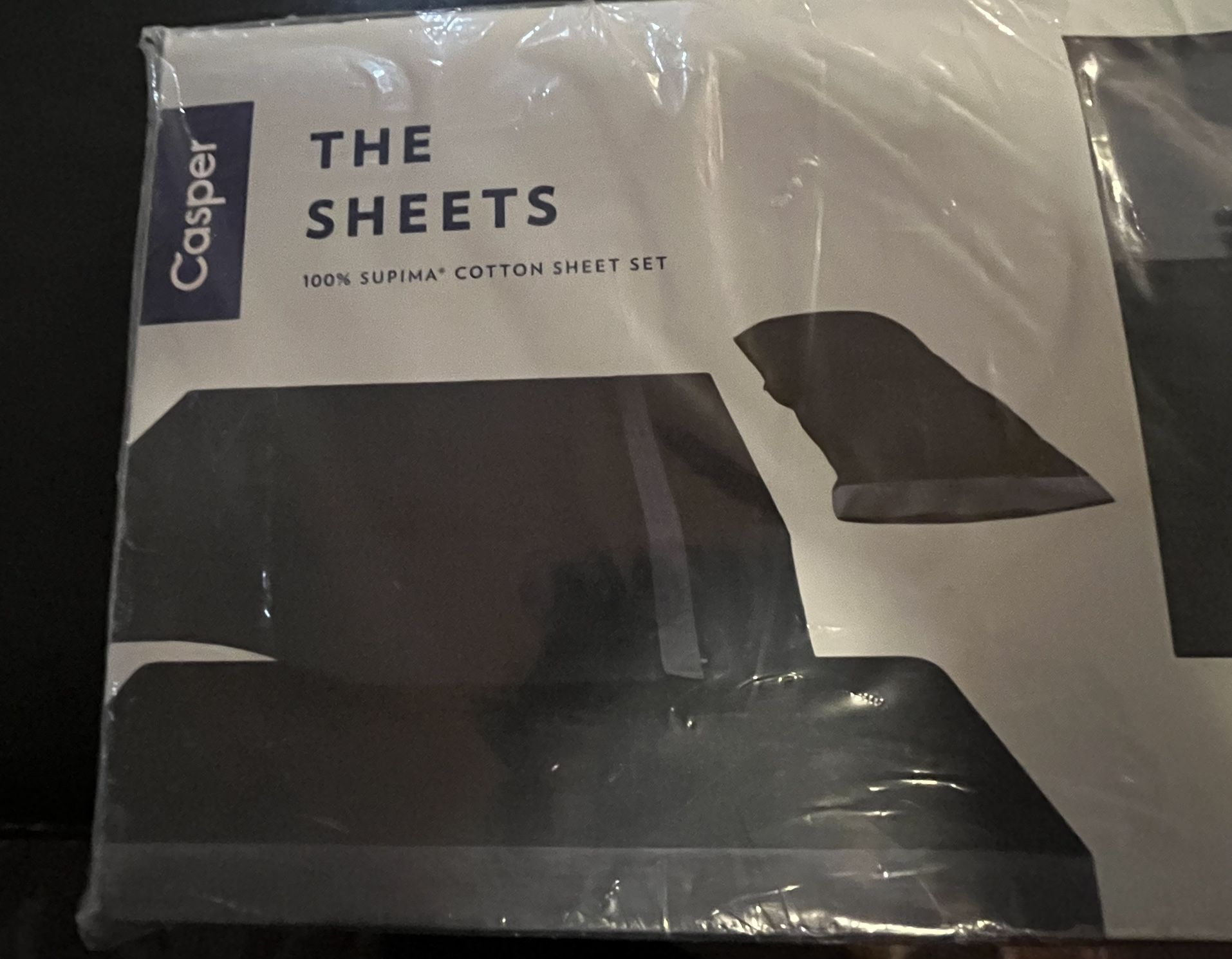 Queen size, navy, made by Casper New in packaging Original Price $120 Available in a different color on eBay for $75. I’m asking $50 (firm) I have a set of these and love them!