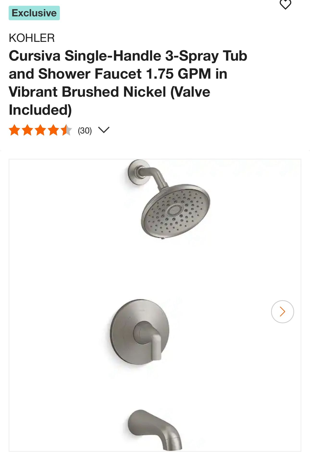 Bathtub & Shower Faucet Combos/KOHLER Exclusive KOHLER Cursiva Single-Handle 3-Spray Tub and Shower Faucet 1.75 GPM in Vibrant Brushed Nickel (Valve Included Retail $199.00 Today only $139.00