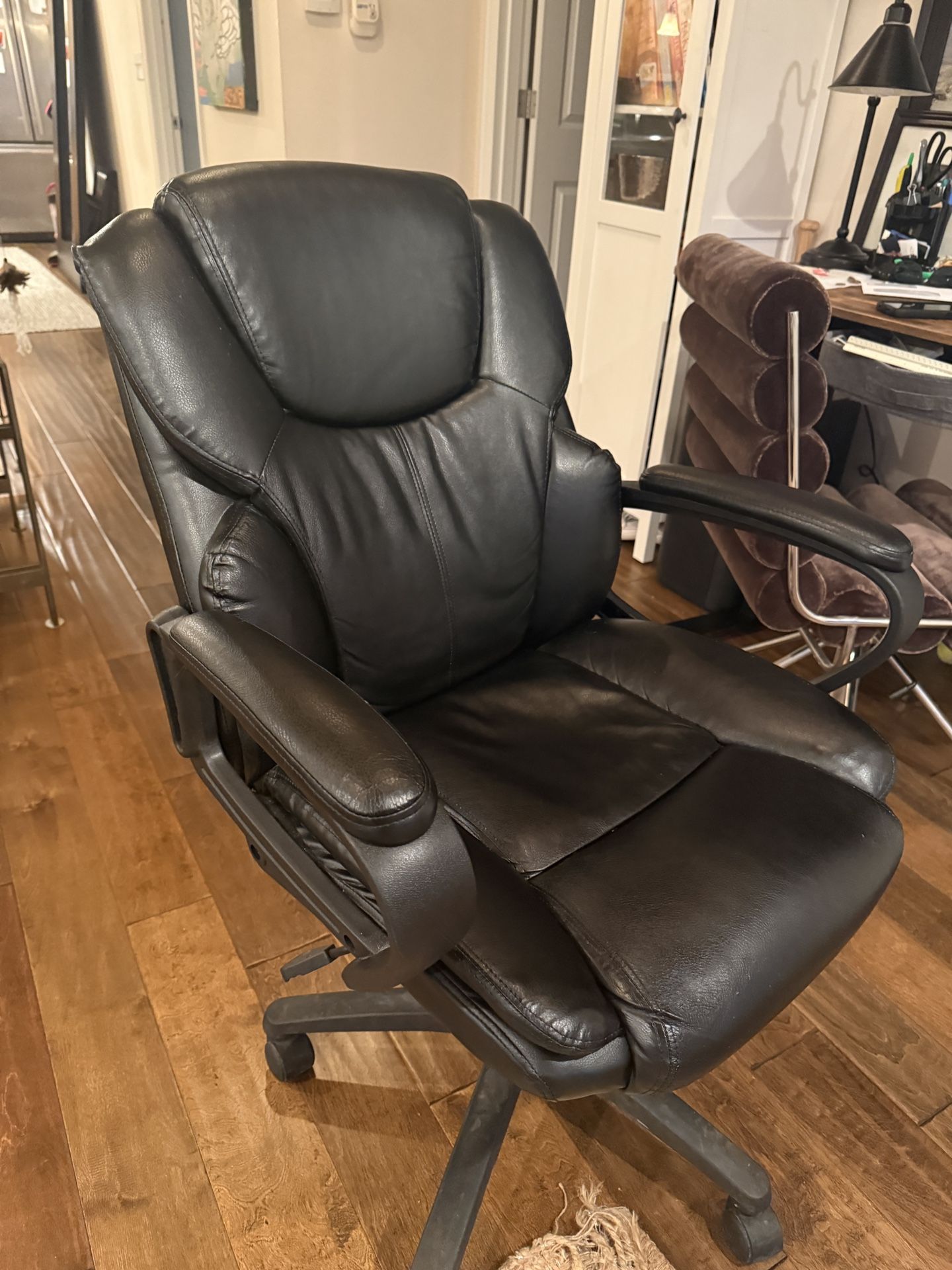 Priced to sell. Great chair that’s both comfortable and in good shape. Adjustable height. See dimensions in photos.