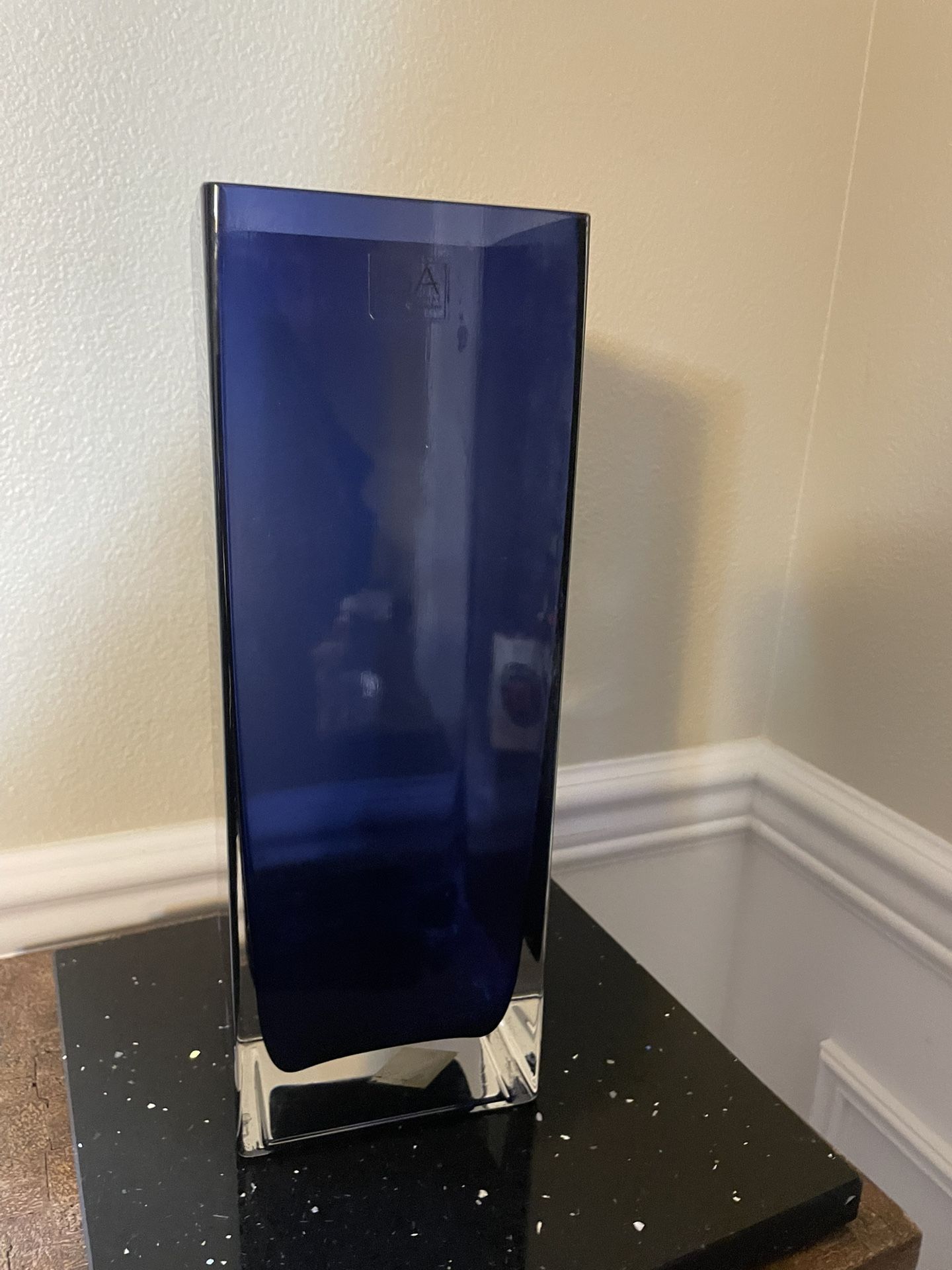 LSA International Cobalt Blue Glass and Clear Glass Vase 12”T