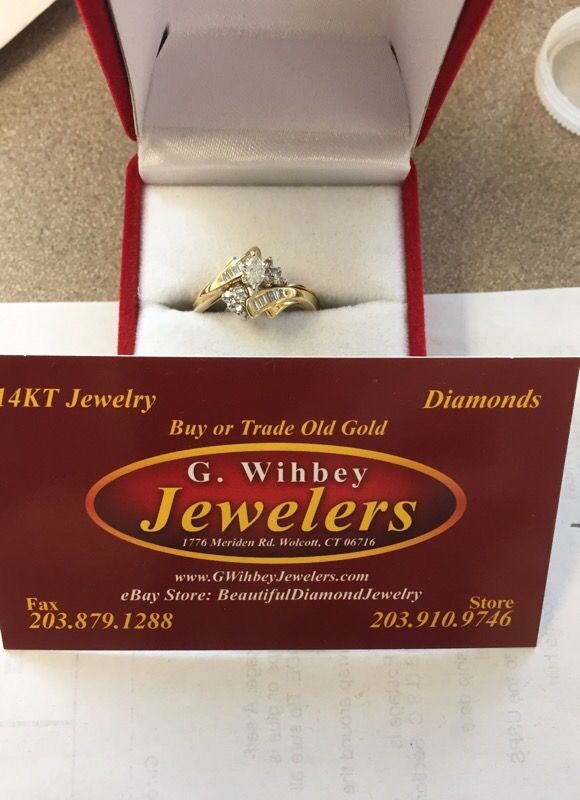 14 Kt real gold & genuine diamonds size6 1/2. Very nice ring I take gold and silver trades and credit cards