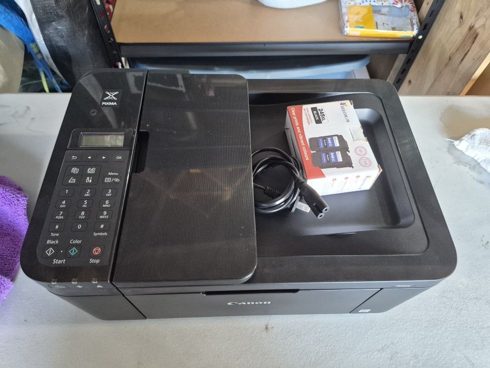 Canon PIXMA all-in-one printer in good working condition. Prints, scans, and copies. Compact size, great for home office, schoolwork, or small business use. Includes: Canon PIXMA printer Power cord New unopened ink cartridges (shown in photo) Features: Wireless printing Color and black & white printing Flatbed scanner and copier Easy-to-use control panel Clean and well cared for. From a smoke-free home.