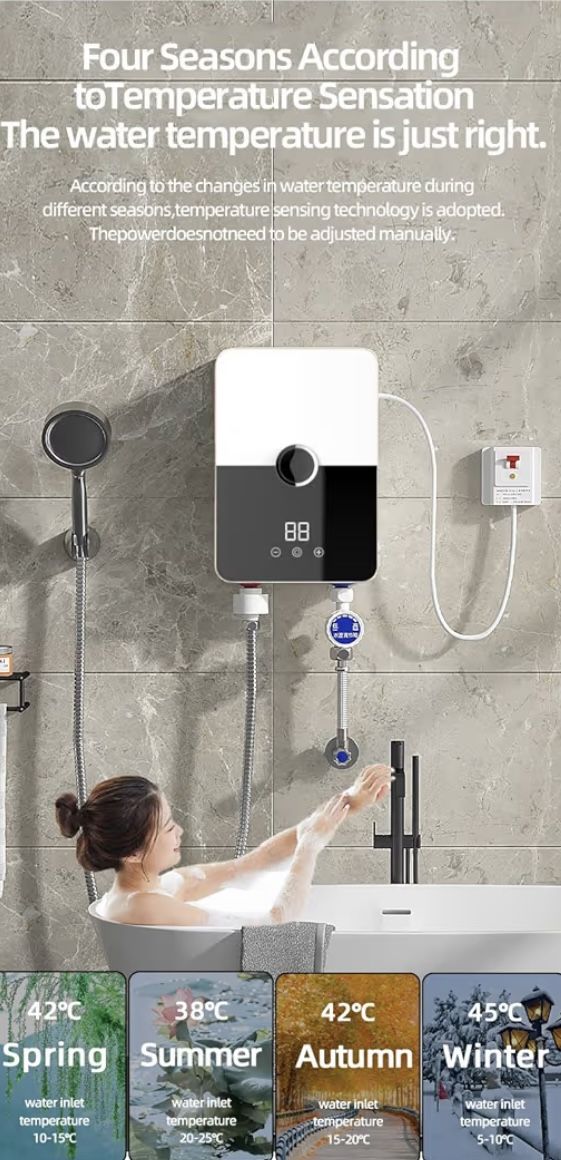 Tankless Water Heater Electric, Shelf Wall Floor Mounted Small Household Bathroom Shower Kitchen Fast heatingG,